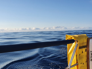 Am Morgen des 14. September – dem 3. Tag auf See schwächelt der Wind abermals. Erst drei Stunden später frischt es soweit auf, dass sich Segeln lohnt. Das Groß mit Genua, Genacker oder Code Zero sind die wechselnden Beseglungen. So sind wir mit Segeln beschäftigt, erneuern das 1. Reff und genießen einen herrlich sonnigen Tag im Nichts der Weite der Biskaya.